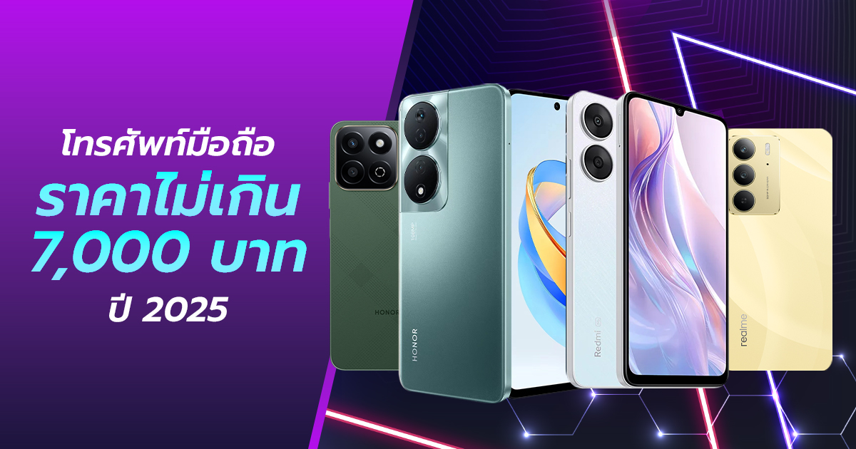 ชี้เป้าโทรศัพท์มือถือราคาไม่เกิน 7,000 บาท ปี 2025 ล่าสุด รุ่นไหนดี สเปกระดับกลาง สำหรับคนมีงบไม่ถึงหมื่น ราคาจับต้องได้ หากเพื่อน ๆ คนไหนกำลังมีแผนจะซื้อโทรศัพท์มือถือใหม่ในช่วงปี 2025 และอยากได้รุ่นที่มีราคาหลักพัน โดยมีงบจำกัดไม่เกิน 7,000 บาท สำหรับเอามาใช้งานทั่วไปหรือจะเล่นเกมด้วยก็ยังไหว อยากรู้ว่าจะมีรุ่นไหนให้เลือกซื้อบ้าง วันนี้เราก็ได้รวบรวมมือถือราคาไม่เกิน 7,000 บาท รุ่นใหม่จากยี่ห้อต่าง ๆ ที่มาพร้อมสเปกและเทคโนโลยีใหม่ ๆ มาแนะนำให้แล้ว ใครสนใจก็ลองนำไปพิจารณาเลือกซื้อกันได้เลย ในการเลือกซื้อโทรศัพท์มือถือนั้น นอกจากจะเลือกจากความชอบส่วนตัวแล้วยังมีอีกหลายปัจจัยที่ผู้ซื้อควรพิจารณาให้ดีก่อนตัดสินใจ ทั้งจุดประสงค์ที่ต้องการซื้อมาใช้งาน สเปกและความแรงของเครื่อง ราคาอยู่ในงบประมาณหรือไม่ รวมถึงร้านและช่องทางที่จะสั่งซื้อ ไปจนถึงวิธีการตรวจเช็กเครื่องเบื้องต้น โดยสามารถอ่านรายละเอียดเพิ่มเติมได้ที่ : ซื้อโทรศัพท์ใหม่ ต้องเช็กอะไรบ้าง หลังจากที่ได้รู้จักกับโทรศัพท์มือถือราคาไม่เกิน 7,000 บาท รุ่นใหม่ ๆ ที่มีจำหน่ายในปี 2025 กันไปแล้ว หากเพื่อน ๆ สนใจรุ่นไหนก็สามารถหาซื้อได้ตามร้านตัวแทนจำหน่ายเลย แต่อย่าลืมตรวจสอบราคากับทางร้านอีกครั้งเนื่องจากราคาอาจมีการเปลี่ยนแปลงไปจากที่ได้ระบุไว้บ้างครับ มือถือราคาไม่เกิน 3,000 บาท รุ่นไหนดี ปี 2025 ราคาถูก เหมาะกับคนมีงบจำกัด มือถือราคาไม่เกิน 6,000 บาท ปี 2025 รุ่นไหนดี เช็กราคาได้ที่นี่เลย โทรศัพท์มือถือราคาไม่เกิน 10,000 รุ่นไหนดี ปี 2025 เช็กที่นี่เลย ! มือถือ vivo 2025 รุ่นไหนดี รวมสเปกพร้อมราคารุ่นใหม่ล่าสุด ซื้อโทรศัพท์ให้ลูกรุ่นไหนดี 2025 มือถือราคาถูกสำหรับเด็ก ๆ และวัยรุ่น ขอบคุณข้อมูลและภาพจาก : vivo.com, mi.com, realme.com, oppo.com, honor.com, infinixmobility.com