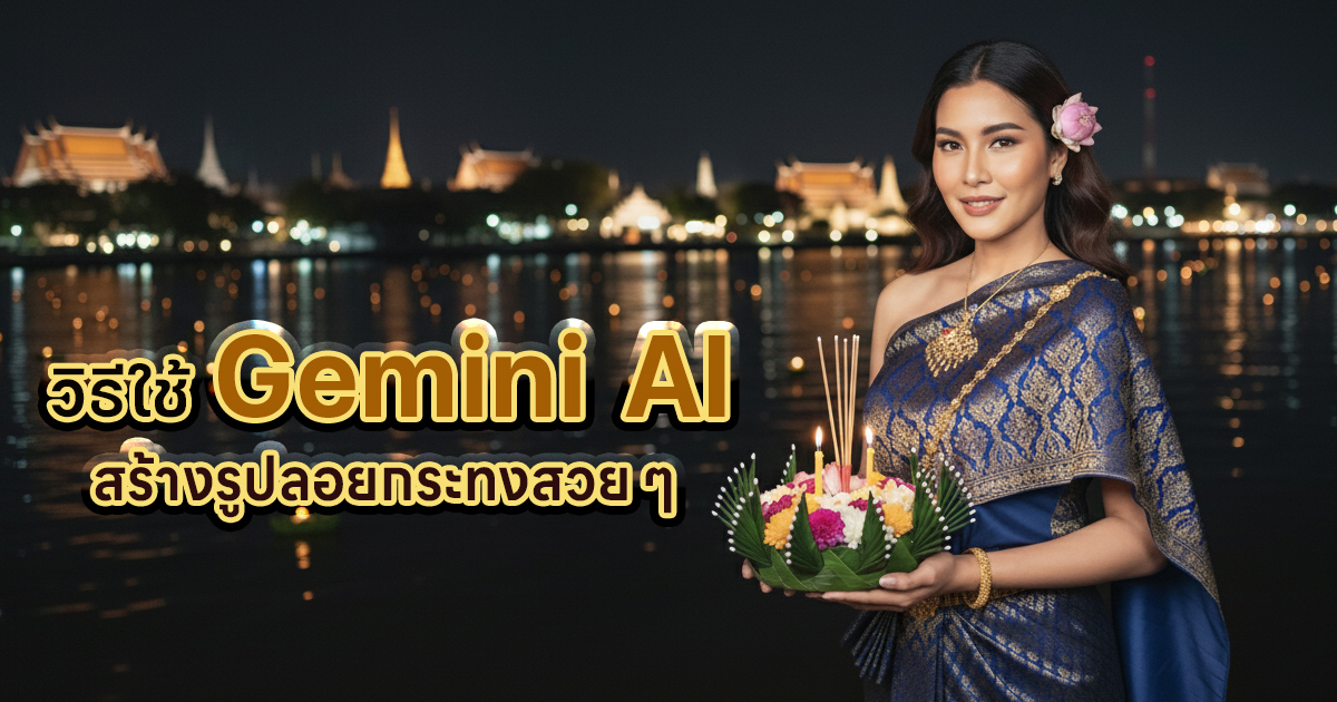 ลอยกระทงทิพย์ ! แจก Prompt สร้างรูปลอยกระทง AI ไม่ต้องลอยจริงก็มีรูปสวย ๆ ได้ในไม่กี่วินาทีด้วย Gemini AI ถึงแม้วันลอยกระทงจะเป็นช่วงเวลาที่หลายคนตั้งตารอเพื่อขอขมาพระแม่คงคาและปล่อยกระทงให้ลอยไปตามสายน้ำ แต่ก็มีคนจำนวนไม่น้อยที่อาจไม่มีเวลาออกไปลอยจริง หรือเลือกที่จะไม่ลอยกระทงเพื่อลดขยะและช่วยรักษาสิ่งแวดล้อม แต่ก็ยังอยากมีรูปลอยกระทงสวย ๆ เอาไว้โพสต์ลงโซเชียลหรือไว้ตั้งเป็นรูปโปรไฟล์ ซึ่งในปัจจุบันนี้ไม่ใช่เรื่องยากเลย เพราะเราสามารถสร้างรูปลอยกระทง AI ได้ง่าย ๆ ด้วย Gemini AI เพียงแค่ใช้คำสั่ง Prompt ตามนี้ ! เปิดแอปฯ Gemini บนมือถือ หรือเข้าเว็บไซต์ Google Gemini บนคอมพิวเตอร์ อัปโหลดรูปถ่ายของตัวเอง ควรเป็นรูปที่เห็นใบหน้าชัดเจนและถ่ายหน้าตรง ส่วนถ้าต้องการสร้างเป็นคู่ก็ให้อัปโหลดรูปถ่ายของทั้งสองคน จะเป็นรูปเดี่ยวแยกกันหรือรูปคู่ก็ได้ ป้อนคำสั่ง Prompt ตามที่ต้องการ โดยระบุรายละเอียดที่ต้องการ เช่น กำลังยืนถือกระทง ฉากหลังเป็นงานลอยกระทง พร้อมทั้งกำหนดว่าต้องการให้ใส่เสื้อผ้าเป็นชุดเดิมหรือชุดแบบใด เมื่อพิมพ์เสร็จแล้ว Prompt ให้กดส่ง แล้วรอเพียงไม่กี่วินาที ก็จะได้รูปลอยกระทงสวย ๆ ออกมาตามที่ต้องการแล้ว ด้านล่างนี้เป็นตัวอย่างการใช้ Prompt เพื่อสร้างรูปลอยกระทง ซึ่งเพื่อน ๆ สามารถนำไปปรับเปลี่ยนแก้ไข Prompt ในแบบอื่น ๆ ตามที่ต้องการได้เลย ทั้งนี้ เนื่องจากคำสั่ง Prompt เดียวกันสามารถสร้างรูปภาพออกมาได้หลากหลายแบบ เพราะฉะนั้นถ้าหากรูปที่ได้ออกมายังไม่ค่อยถูกใจ ก็สามารถใช้ Prompt เดิมเพื่อสั่งให้ Gemini AI ทำซ้ำหรือจะปรับแก้ไข Prompt เพิ่มเติมจนกว่าจะพอใจก็ได้เช่นกัน วิธีทำรูปคู่ AI ด้วย Gemini ต้องใช้ Prompt อะไรมาดูกัน วิธีใช้ Gemini AI สร้างรูปแต่งงานในฝันได้ดั่งใจนึก ทำยังไงมาดูกันเลย ! วิธีสร้างรูปหมู่ด้วย Gemini AI รวมรูปหลายคนไว้ในรูปเดียว วิธีใช้ Gemini AI เปลี่ยนสีเสื้อผ้าในรูปภาพ เปลี่ยนได้ทุกสี ไม่ต้องถ่ายใหม่ วิธีทำโมเดลฟิกเกอร์ Art Toy และรูปปั้นยักษ์ด้วย Gemini AI