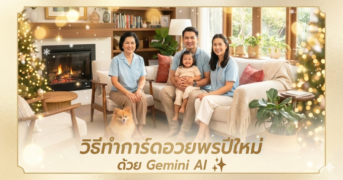 แจก Prompt พร้อมวิธีทำการ์ดปีใหม่ 2569 ด้วย Gemini AI สำหรับไว้แชร์โซเชียลหรือส่งให้คนที่รักและห่วงใย ในเทศกาลส่งท้ายปีเก่าต้อนรับปีใหม่นี้ ช่วงเทศกาลวันปีใหม่แบบนี้ ใครที่อยากส่งความสุขให้คนพิเศษแต่ไม่ถนัดงานออกแบบก็ไม่ต้องกังวลอีกต่อไป เพราะตอนนี้ Gemini AI ช่วยให้การทำการ์ดปีใหม่ 2569 เป็นเรื่องง่ายกว่าที่คิด เพียงแค่อัปโหลดรูปภาพ เลือกสไตล์และข้อความอวยพรที่ชอบ ก็สามารถสร้างการ์ดสวย ๆ ได้ภายในไม่กี่นาที โดยในวันนี้เราจะพาไปดูวิธีทำการ์ดอวยพรปีใหม่ด้วย Gemini AI แบบง่าย ๆ กันเหมาะทั้งสำหรับใช้ส่งให้คนใกล้ตัว หรือแชร์ต่อบนโซเชียลรับปีใหม่แบบเก๋ ๆ เปิดแอปฯ Gemini บนมือถือ หรือเข้าเว็บไซต์ Google Gemini บนคอมพิวเตอร์ อัปโหลดรูปภาพที่ต้องการใช้ทำการ์ดปีใหม่ ป้อนคำสั่ง Prompt ตามที่ต้องการ หรือเลือกใช้จาก Prompt ตัวอย่างด้านล่างนี้ รอเพียงไม่กี่วินาทีก็จะได้การ์ดอวยพรปีใหม่สวย ๆ ตามที่ต้องการแล้ว ! ด้านล่างนี้เป็นตัวอย่างการใช้ Prompt เพื่อทำการ์ดอวยพรปีใหม่ ซึ่งเพื่อน ๆ สามารถนำไปปรับเปลี่ยนแก้ไข Prompt ในแบบอื่น ๆ ตามที่ต้องการได้เลย และแนะนำว่าให้เลือกใช้โมเดล Gemini AI แบบ Thinking (Nano Banana Pro) เพื่อให้ AI สามารถพิมพ์ข้อความอวยพรบนการ์ดได้อย่างถูกต้องและแม่นยำ หมายเหตุ : ทางเว็บไซต์ทำตัวหนังสือในรูปตัวอย่างให้เบลอเพื่อป้องกันปัญหาด้านลิขสิทธิ์ Font เท่านั้น ซึ่งรูปภาพที่ได้จริง ๆ จากการ Generate ตัวหนังสือจะคมชัดปกติ หมายเหตุ : การระบุใน Prompt ให้สร้างรูปสัดส่วนแนวตั้งนั้นจะใช้ได้เฉพาะในกรณีที่ใช้โมเดลแบบ Thinking (Nano Banana Pro) เท่านั้น แต่ถ้าใช้แบบพื้นฐาน (Fast) มักจะได้สัดส่วนออกมาเหมือนกับรูปภาพที่อัปโหลดเท่านั้นทั้งนี้ เนื่องจากการใช้คำสั่ง Prompt เดียวกันในสร้างการ์ดอวยพรแต่ละครั้งนั้น อาจได้รูปออกมาแตกต่างกันออกไปบ้างไม่มากก็น้อย เพราะฉะนั้นถ้าหากรูปที่ได้ออกมายังไม่ถูกใจ ก็สามารถใช้ Prompt เดิมเพื่อสั่งให้ Gemini AI ทำซ้ำหรือจะปรับแก้ไข Prompt เพิ่มเติมตามที่ต้องการจนกว่าจะพอใจก็ได้เช่นกัน นอกจากนี้ เนื่องจากโมเดล Nano Banana Pro สามารถสร้างรูปภาพได้ฟรีเพียงวันละประมาณ 3 รูป ซึ่งถ้าหากจำเป็นต้องใช้โมเดล Nano Banana แบบพื้นฐานที่ไม่สามารถพิมพ์ตัวหนังสืออย่างถูกต้องได้ ก็อาจใช้วิธีแก้ไข Prompt ให้สร้างการ์ดโดยไม่ต้องพิมพ์ข้อความอวยพร แล้วค่อยใช้แอปฯ อื่น ๆ พิมพ์ข้อความเพิ่มเข้าไปเองทีหลังแทน วิธีแต่งรูปคริสต์มาส AI ด้วย Gemini สร้างรูปภาพฟีลเทศกาลสวย ๆ ส่งท้ายปี วิธีทำรูปคู่ AI ด้วย Gemini ต้องใช้ Prompt อะไรมาดูกัน วิธีสร้างรูปหมู่ด้วย Gemini AI รวมรูปหลายคนไว้ในรูปเดียว วิธีใช้ Gemini AI สร้างภาพคนตามคำสั่ง อย