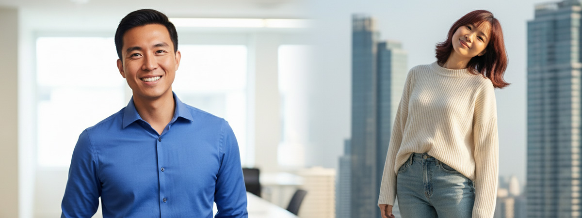แปลงรูปภาพของฉันให้เป็นรูปโปรไฟล์โซเชียลที่ดูสดใสและดูเป็นมืออาชีพ ใส่เสื้อเชิ้ตแขนยาวสีน้ำเงินและพับแขนเสื้อเล็กน้อย ใส่กางเกงสแลคสีดำ แสงธรรมชาติต้องสวยและมีมิติ ฉันเอียงหัวเล็กน้อยให้ดูไม่แข็งทื่อ ฉากหลังเบลอให้ดู