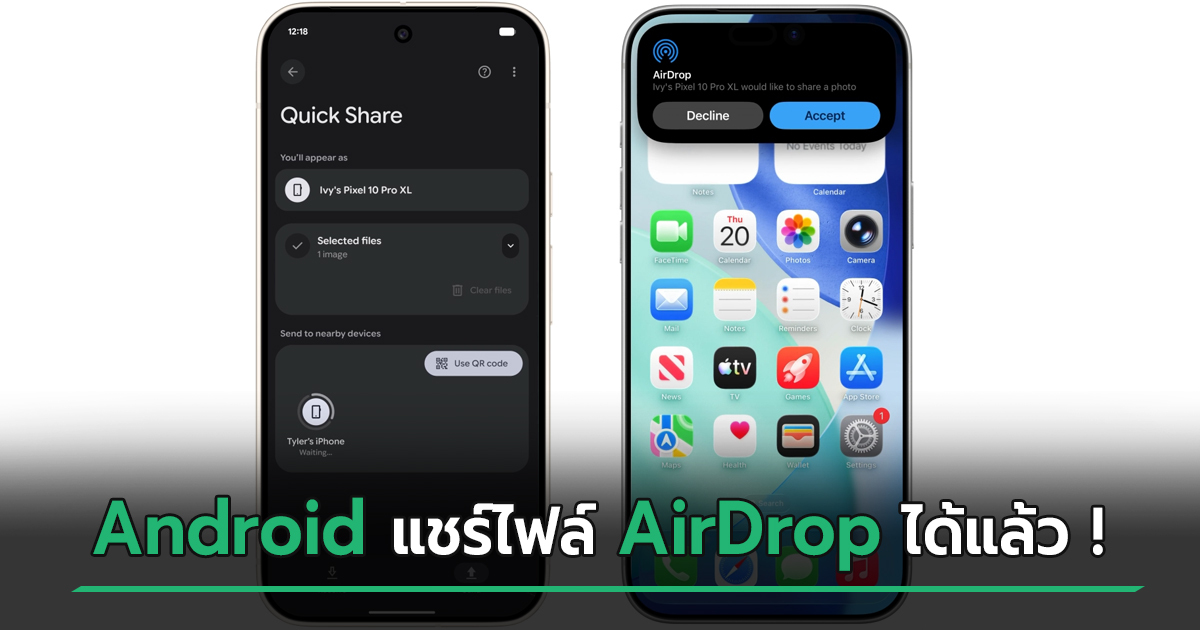 ข่าวดี ! โทรศัพท์มือถือ Android สามารถแชร์ไฟล์ AirDrop กับ iPhone ได้แล้วด้วยฟีเจอร์ Quick Share เริ่มใช้ได้บนมือถือ Google Pixel 10 เป็นรุ่นแรก