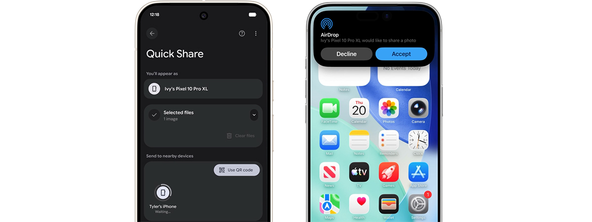 ล่าสุด Google ได้เปิดตัวฟีเจอร์ใหม่ที่ทำให้มือถือ Android สามารถใช้ฟีเจอร์ Quick Share แชร์ไฟล์ร่วมกับ AirDrop ของ iPhone ได้โดยตรง ช่วยให้การโอนถ่ายไฟล์ข้ามระหว่างระบบปฏิบัติการทำได้สะดวกขึ้น โดยในช่วงแรกจะเริ่มเปิดใช้งานเฉพาะบน มือถือ Google Pixel 10 และ Pixel 10 Pro ก่อนเป็นอันดับแรก โดยผู้ใช้ iPhone จะต้องเปิดโหมด AirDrop แบบ Everyone for 10 Minute (รับไฟล์จากทุกคน) เพื่อให้สามารถรับไฟล์จาก Pixel 10 ได้