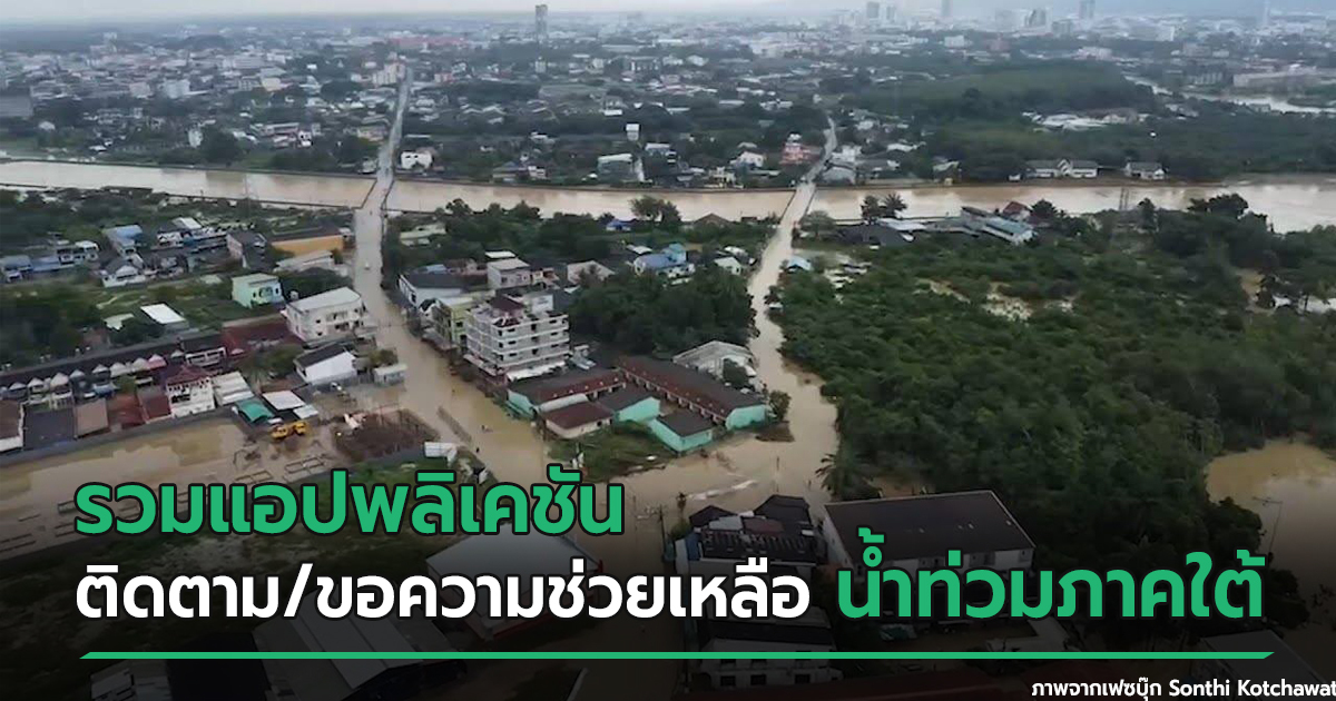 แอปฯ ต่อไปนี้เป็นเครื่องมือที่ช่วยให้สามารถประเมินสถานการณ์ต่าง ๆ เกี่ยวกับน้ำท่วมภาคใต้ ไม่ว่าจะเป็นการดูระดับน้ำ ติดตามข้อมูลฝน เขื่อน และการคาดการณ์ล่วงหน้า รวมถึงการแจ้งขอความช่วยเหลือ