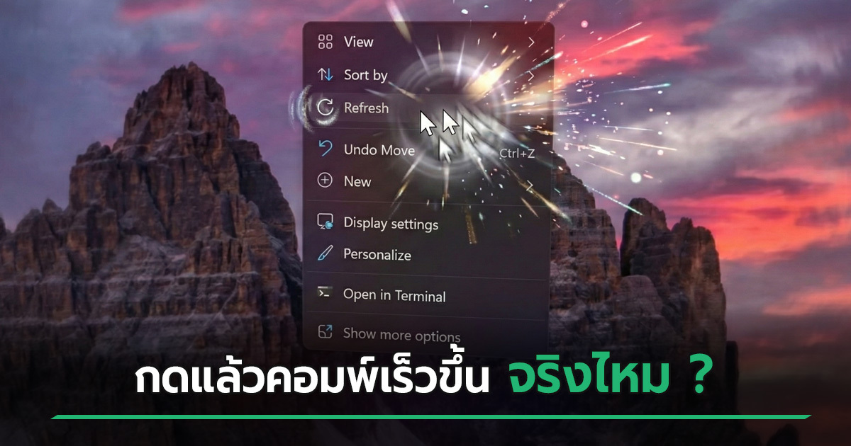 เชื่อว่าน่าจะมีคนจำนวนไม่น้อยที่โตมากับนิสัยชอบคลิกขวาที่หน้าเดสก์ท็อปแล้วเลือก Refresh Desktop บ่อย ๆ เพราะบางคนคิดว่ามันจะช่วยให้คอมพิวเตอร์ทำงานได้เร็วขึ้น หรือเล่นเกมได้ลื่นขึ้น แต่หลายคนก็มีการตั้งคำถามในใจว่า มันช่วยได้จริง ๆ หรือเป็นเพียงแค่ความเชื่อที่คิดกันไปเองก็เท่านั้น วันนี้เราจะมาหาคำตอบในเรื่องนี้ไปพร้อม ๆ กัน