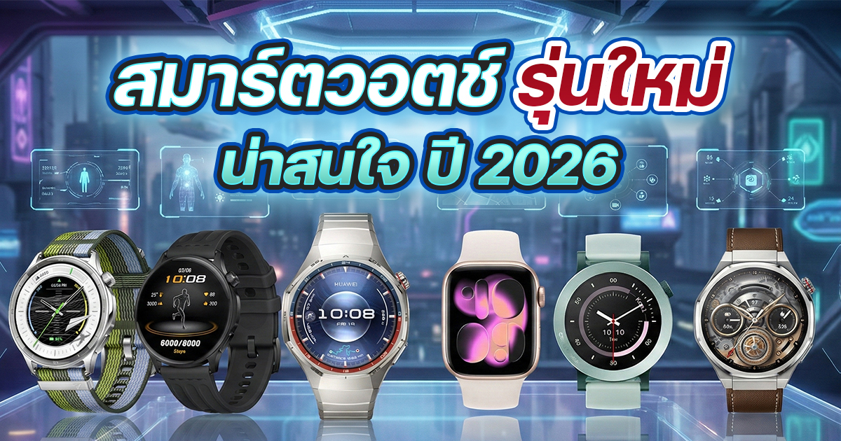 Smart Watch (สมาร์ตวอตช์) อุปกรณ์เทคโนโลยีแบบสวมใส่ที่ไม่ได้เป็นแค่นาฬิกาข้อมือสำหรับใช้ดูเวลา เพราะมันมักจะมาพร้อมกับความสามารถและลูกเล่นต่าง ๆ ที่สามารถใช้ประโยชน์ในชีวิตประจำวันได้หลายอย่าง โดยเฉพาะฟีเจอร์ด้านสุขภาพและฟิตเนสที่จะช่วยให้คุณภาพชีวิตของผู้ใช้ดียิ่งขึ้น รวมทั้งการเชื่อมต่อกับโทรศัพท์มือถือเพื่อให้ใช้ฟังก์ชั่นบางอย่างของได้โดยไม่ต้องหยิบมือถือขึ้นมาดู และถ้าหากใครกำลังมองหาสมาร์ตวอตช์มาใช้คู่กายสักเรือน อยากรู้ว่าจะมีรุ่นไหนน่าสนใจบ้าง วันนี้เราก็มี Smart Watch 2026 รุ่นใหม่ ๆ มาแนะนำให้แล้ว