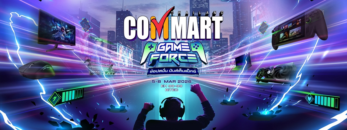 กลับมาอีกครั้งกับงาน Commart 2026 ที่รอบนี้มาในชื่อ COMMART GAMEFORCE มหกรรมแสดงและจำหน่ายสินค้าไอทีและคอมพิวเตอร์ พร้อมเปิดตัวความร่วมมือกับ บริษัท เอ็นวิเดีย (ประเทศไทย) จำกัด บริษัทเทคโนโลยีระดับโลกที่ร่วมมอบประสบการณ์เกมมิ่งอย่างเต็มรูปแบบ และโปรโมชั่นสินค้าไอทีสุดร้อนแรงในราคาพิเศษเฉพาะในงาน พร้อมทดลองใช้งานจริงก่อนตัดสินใจซื้อ ครบจบในงานเดียว พบกับสินคัาไอที คอมพิวเตอร์จากแบรนด์ดัง อาทิ ACE, Banana, E-Quip, Epson, iStudio by spvi, IT City, JIB, Maru, Zarukon, JIB Mobile, MSI, Speed Computer, Speed Gaming, Studio7, AMD, AppleSheep, Ascenti, ASUS, ROG, Bewell, Cougar, ERGOTREND, GamersLab, SecretLAB, เครดิตบูโร, Moonshot, GeForce NOW, Nvidia GeForce, Synnex