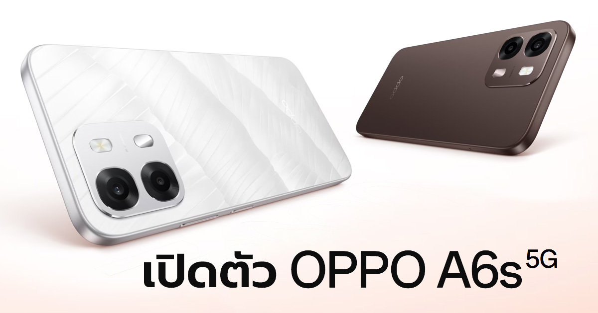 OPPO เปิดตัว OPPO A6s 5G โทรศัพท์มือถือระดับกลางที่มีแบตเตอรี่ขนาดใหญ่ถึง 7000mAh รองรับชาร์จเร็ว 80W SUPERVOOC พร้อมระบบระบายความร้อน SuperCool VC System และคุณสมบัติกันน้ำกันฝุ่นที่มาตรฐาน IP69 ส่วนสเปกอื่น ๆ จะประกอบไปด้วยหน้าจอขนาด 6.75 นิ้ว ความละเอียดระดับ HD+ อัตรารีเฟรช 120Hz ใช้ชิปประมวลผล Dimensity 6300 รองรับ 5G แรม 8GB ความจุเลือกได้ 128GB/256GB กล้องหลังคู่ 50MP + 2MP กล้องหน้า 16MP และรันระบบปฏิบัติการ ColorOS 15 บนพื้นฐาน Android 15